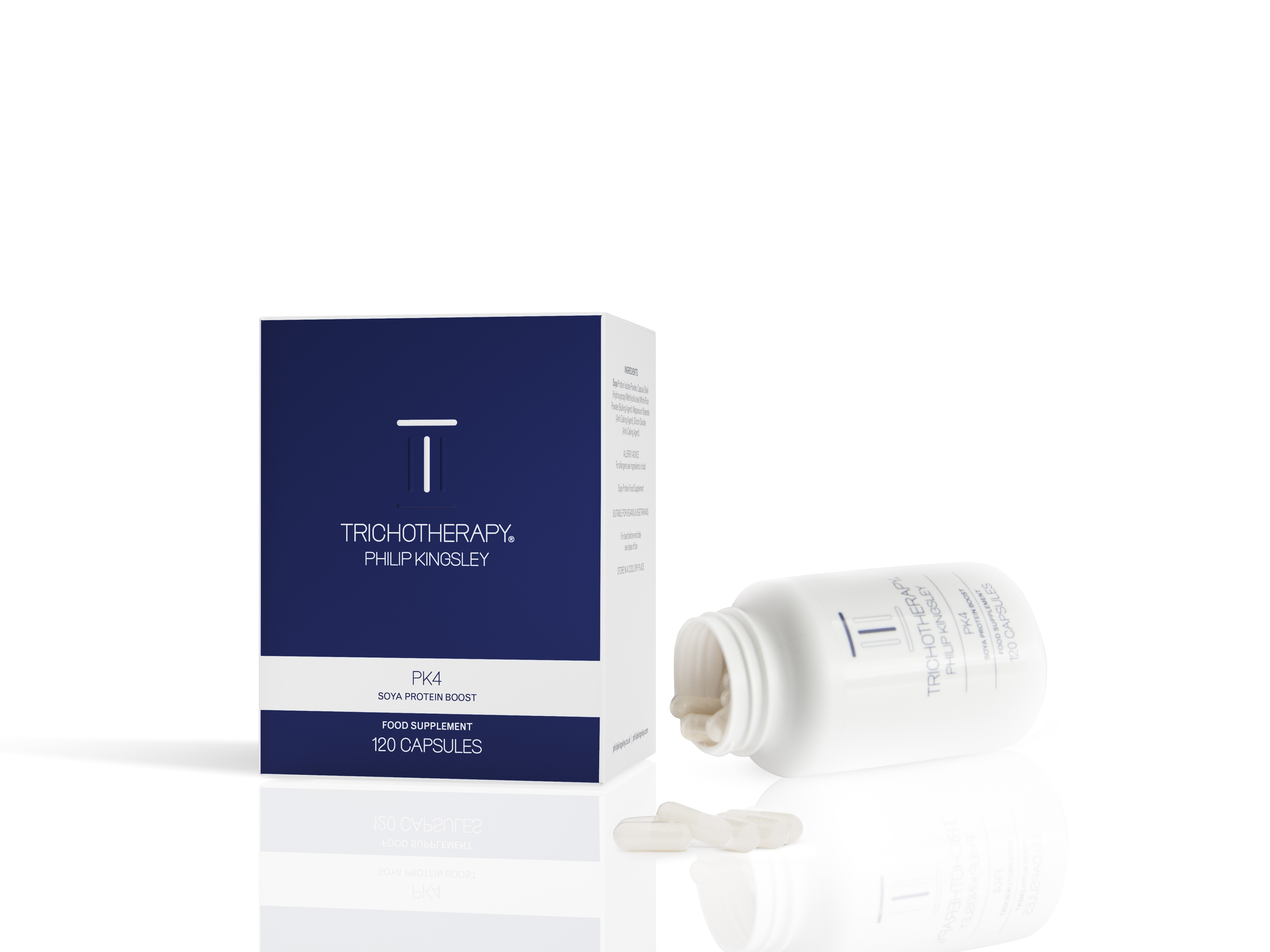 PK4 Protein Boost is our best-selling dietary supplement. It is specially formulated to help support full, healthy hair from the inside out. Ideal for those with a low protein diet, it delivers a boost of essential amino acids, which your body can use to produce keratin, the main component of your hair. For best results, take for a minimum of three months. Four capsules provide 1600mg Soya Protein Isolate Powder, from which 1354mg is Soya Protein.
